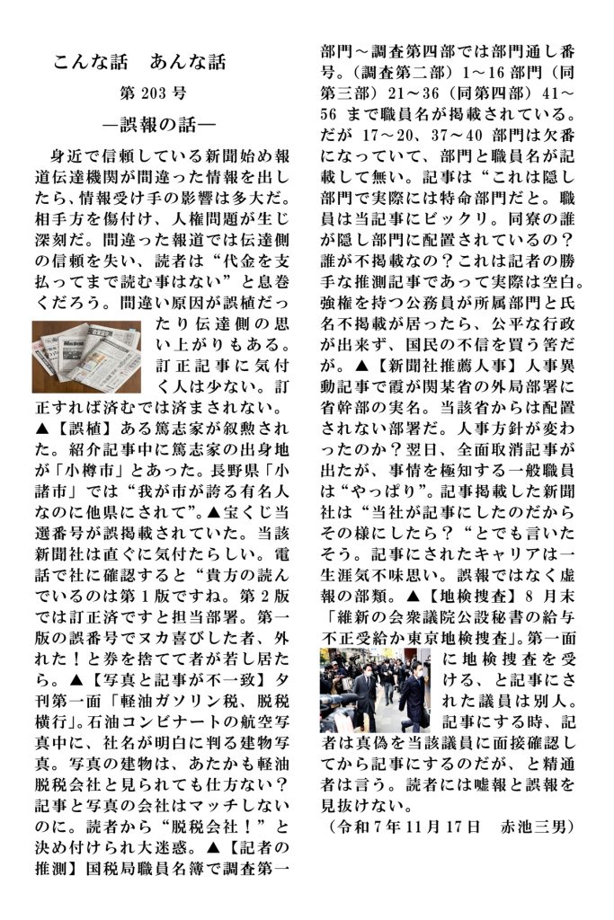赤池三男第203号「-誤報の話-」(2025年11月17日)