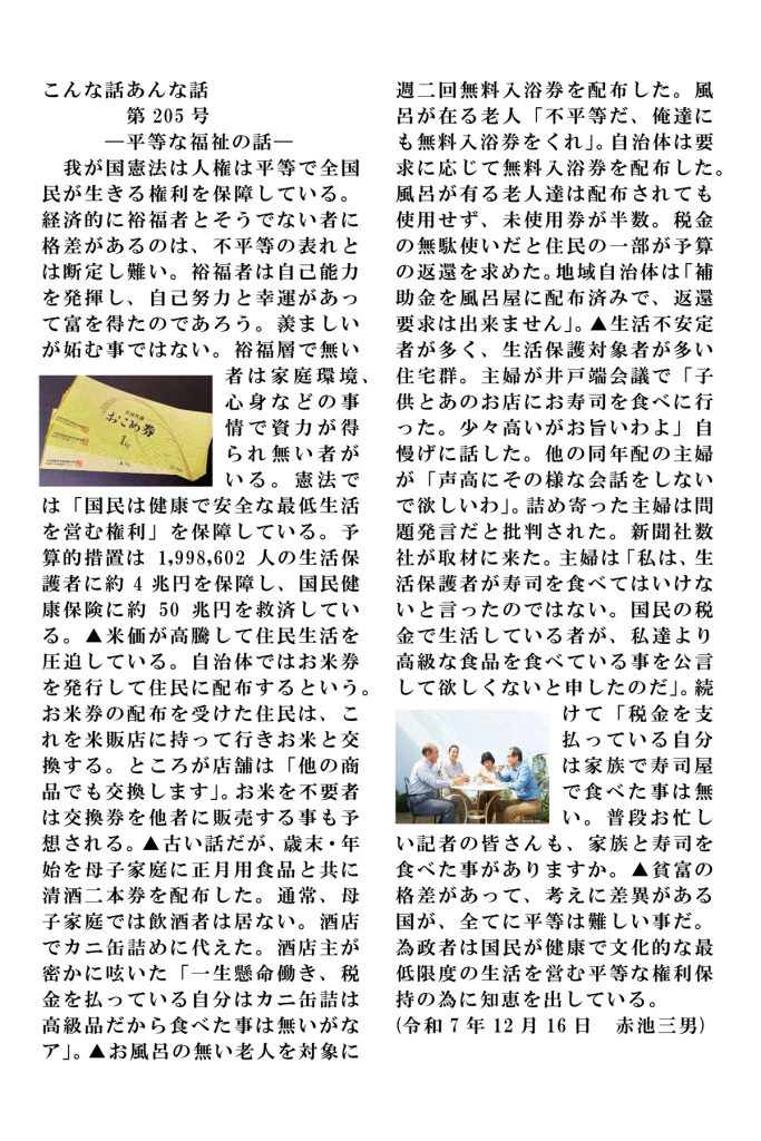 赤池三男第205号「-平等福祉の話-」(2025年12月16日)