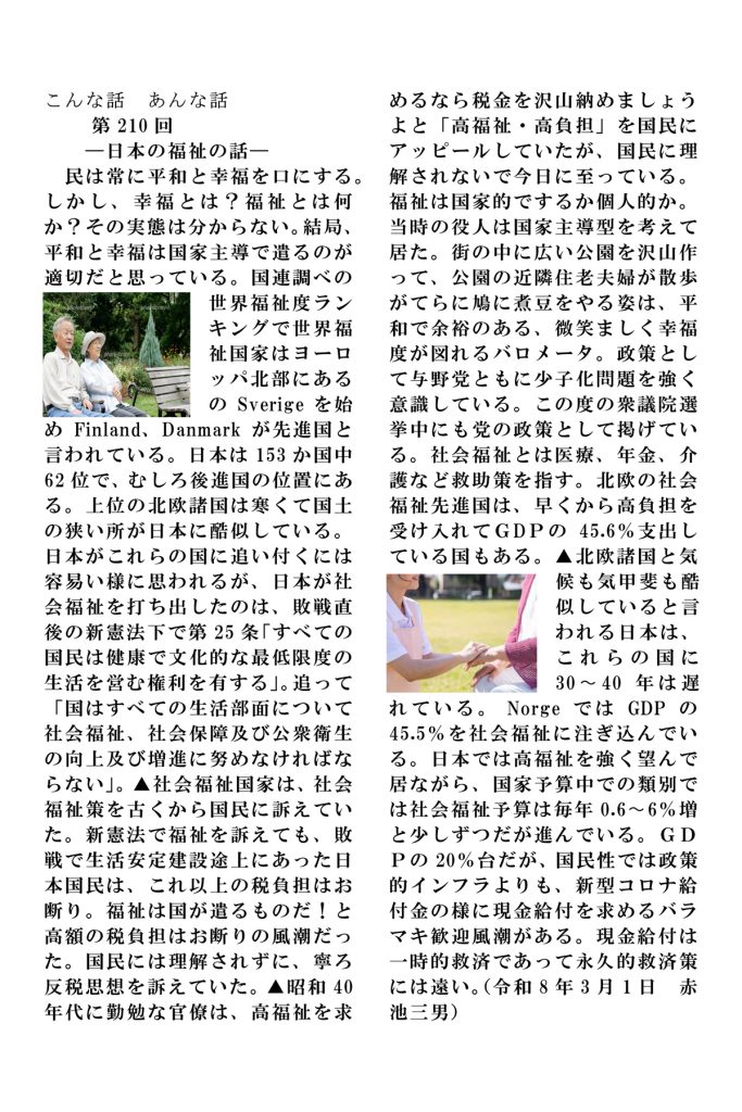 赤池三男第210号「⁻日本の福祉の話⁻」(令和8年3月1日) 2026 3/03 お知らせ・ブログ こんな話しあんな話し 2026.03.03 お知らせ・ブログ こんな話しあんな話し 赤池三男第209号「⁻確定申告の話⁻」(令和8年2月16日)